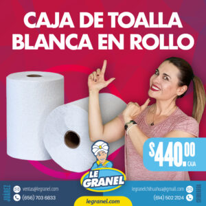 Caja de toalla blanca en rollo